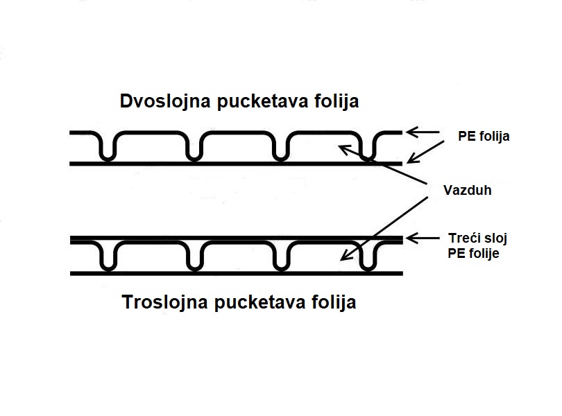 Pucketava Folija - Alternativni nazivi su: folija sa vazdušnim mehurićima, vazdušna folija, puckava folija, air bubble(eng), pucketavi najlon kao i puc puc folija. Ova folija je do sada neprevaziđena što se tiče pakovanja lomljivih i stvari osetljivih na udarce, ispadanje i sl.